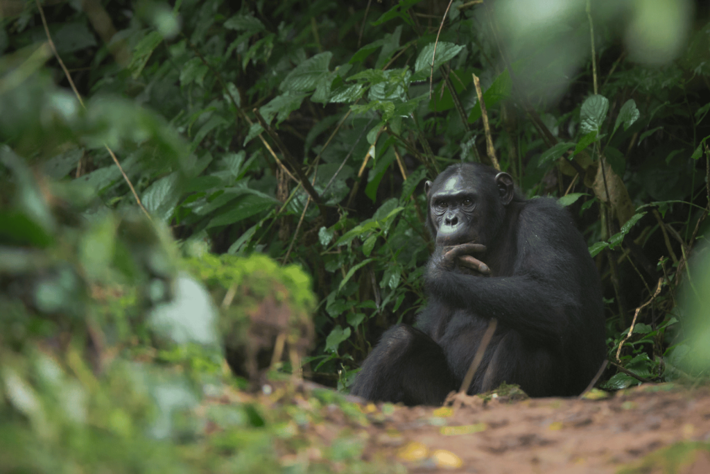 Los chimpancés, seres sociables, viven en grandes comunidades y se desplazan diariamente en busca de alimento o cazando pequeños mamíferos ocasionalmente. Cada noche construyen nuevos nidos en los árboles para dormir.